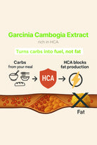 -HCA Garcinia (Garcinia Cambogia Extract) Helps reduce conversion of excess carbohydrates into fat and supports fat burning during physical activity